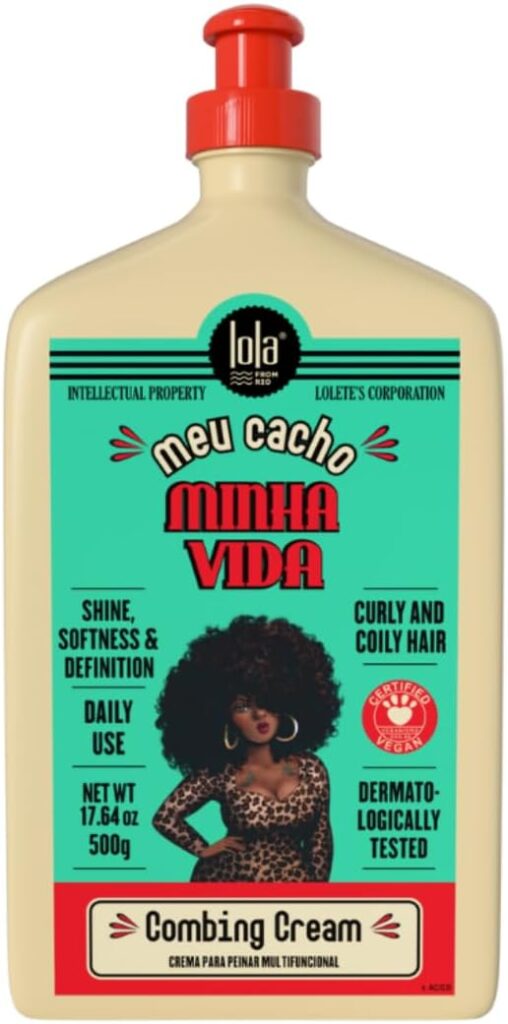 Esse creme de pentear da Lola é muito completo. Ele tem 500 gramas e é da linha Meu Cacho Minha Vida. Esse é um produto vegano especializado em cabelos cacheados que demanda uso diário.